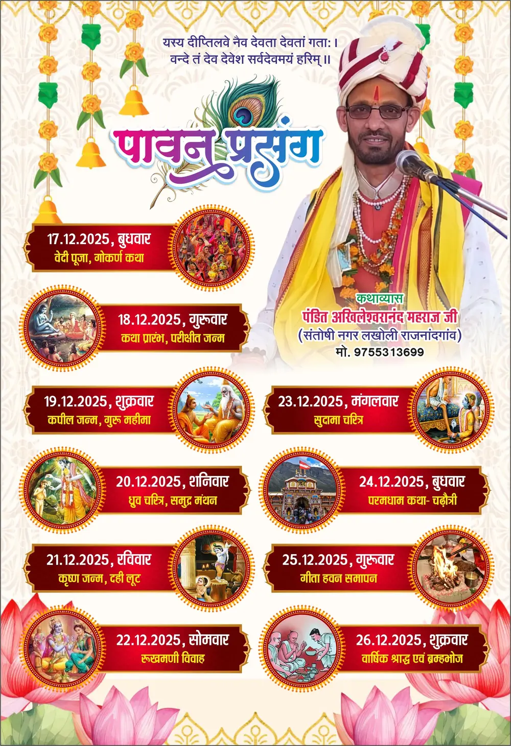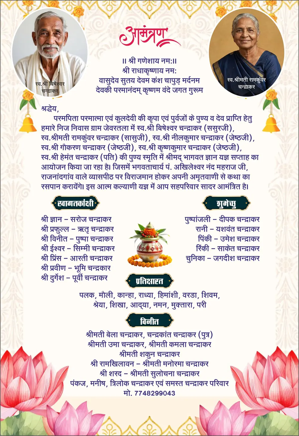 Beautifully crafted Shree Mad Bhagwat Katha Gyan Yagya Saptah Invitation Card 281125